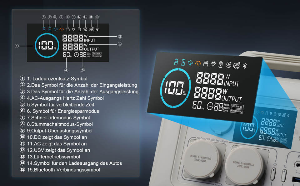 2 * AC Sortie:100-120V/220-240V 600W Max(Surged 1200W)
