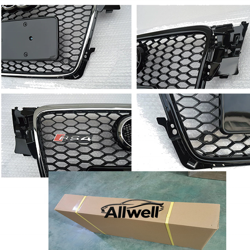 Grille de pare-chocs avant ALLWELL compatible avec Audi A4 B8, mise à niveau vers grille RS4, 2008-2012, ventilation de pare-chocs avant améliorée pour A4