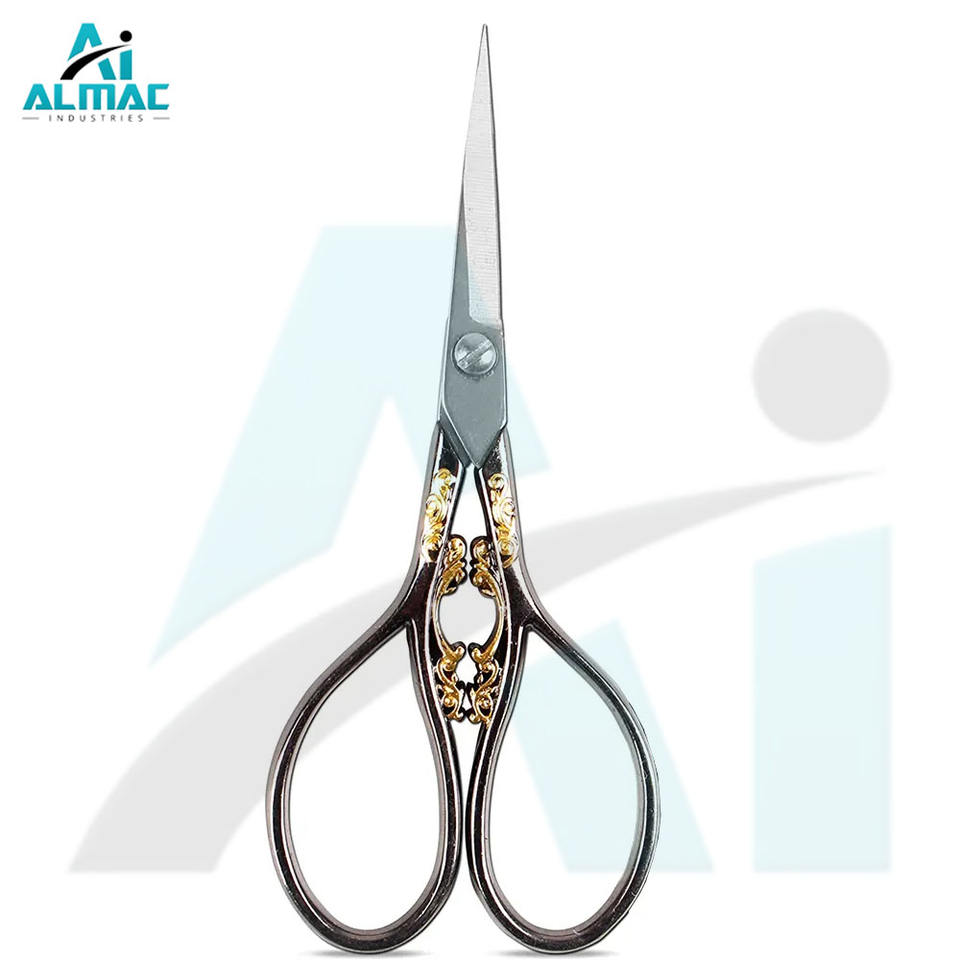 ALMAC Mini ciseaux à broder en acier inoxydable de haute qualité Belle source d'alimentation manuelle au design vintage plaqué or noir
