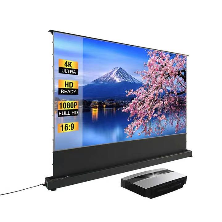 Écran de projection ALR motorisé avec télécommande, écran de projection motorisé au sol, tension de tension 100 pouces 16:9, vidéo de film intérieure, maison
