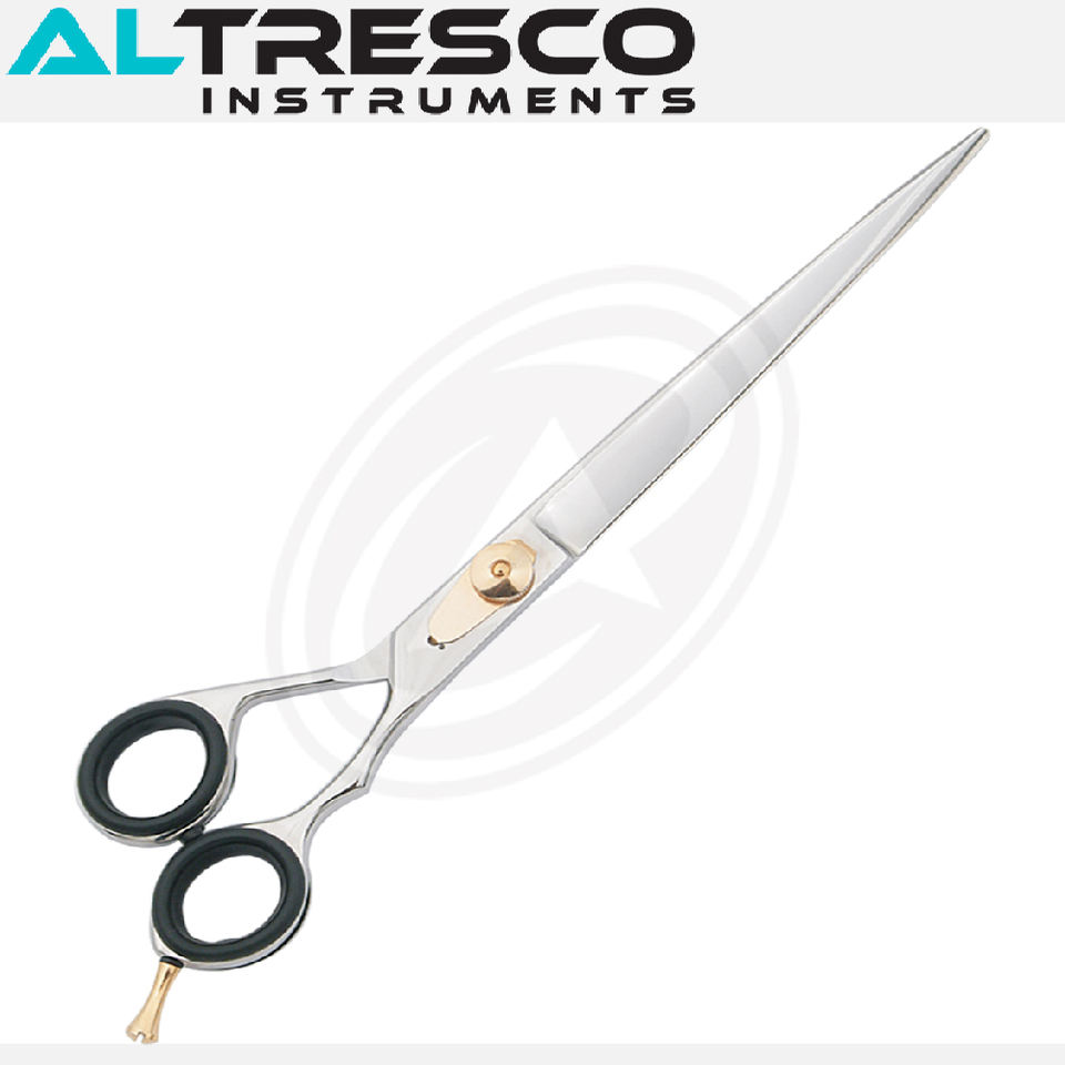 ALTRESCO Ciseaux de toilettage pour animaux domestiques à bord convexe/biseauté en acier inoxydable Repose-doigt fixe Vis réglable (inserts pour doigts) Lame tranchante