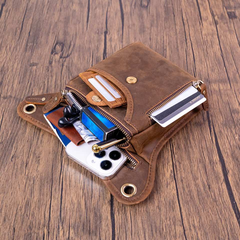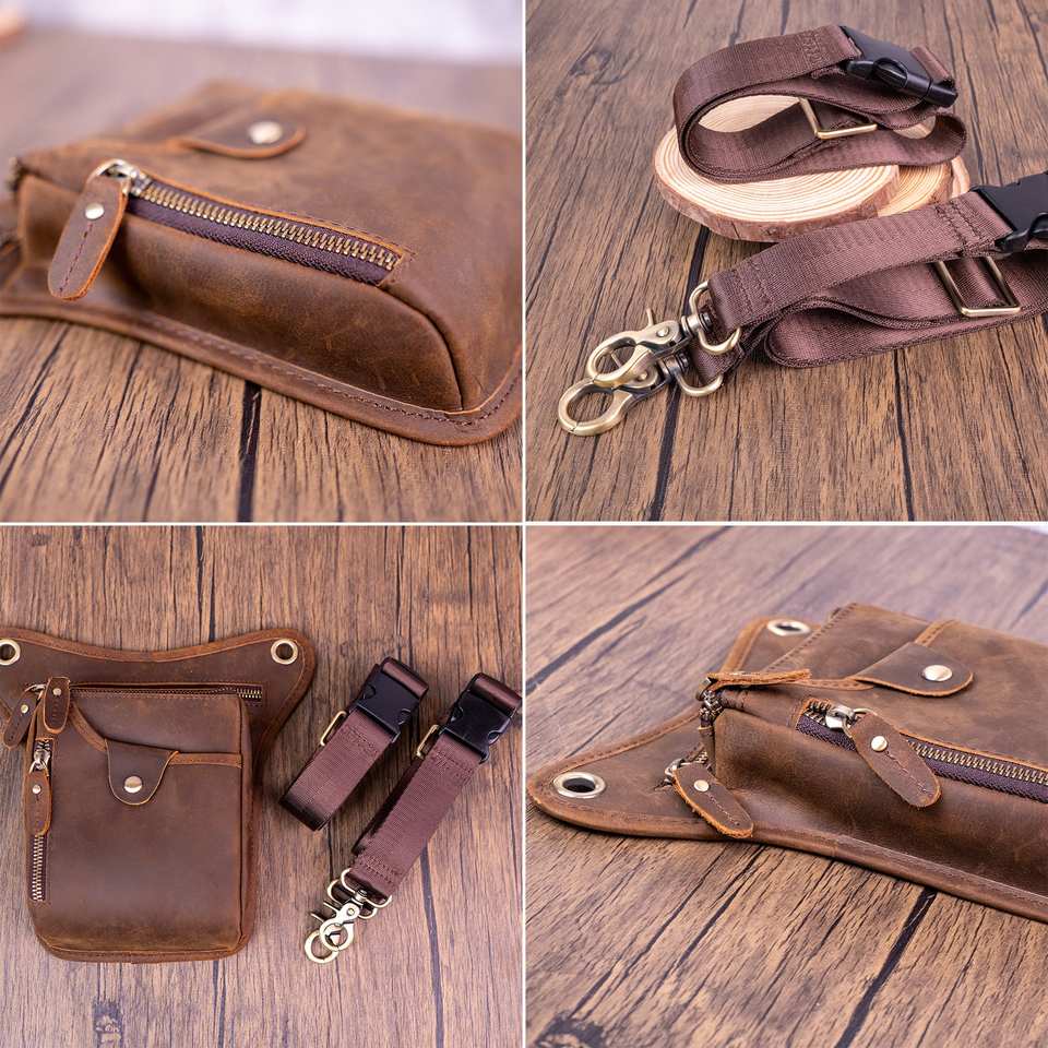 ALW 2025 Custom Full Grain Leather Motorcycle Waist Pack Thigh Drop Leg Bag High Quality OEM ODM for Men and Women