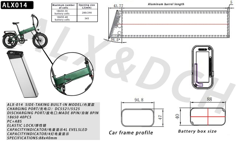 Boîtier de batterie ALX014 pour vélo électrique, antivol, coque vide dissimulée, couvercle supérieur verrouillable pour projets de vélos électriques urbains sécurisés