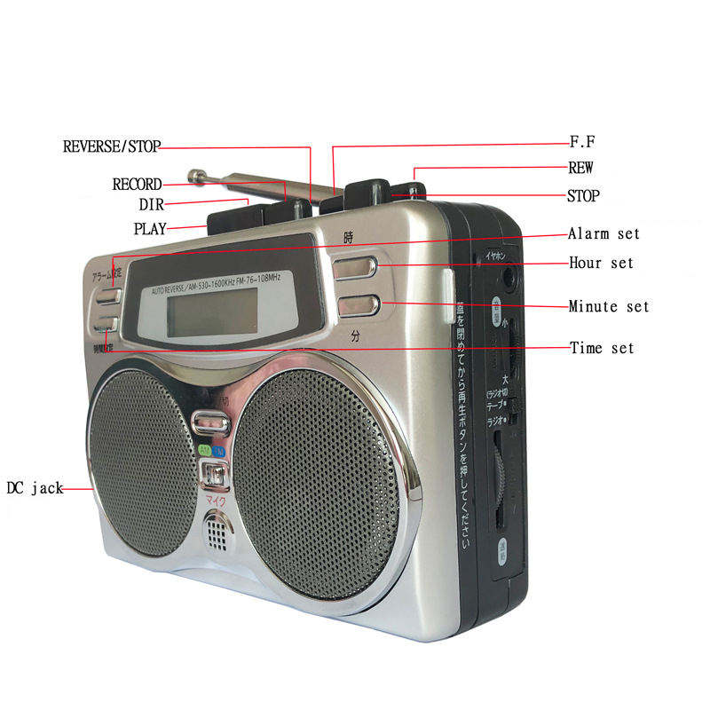 Radio AM/FM, magnétophone, lecteur de cassettes, Walkman, fonction d'inversion automatique, lecteur nostalgique