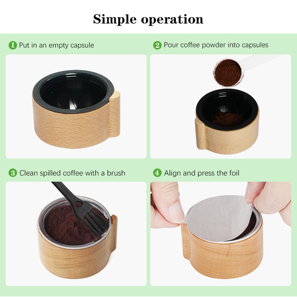 AM Store Produit phare : Kit de capsules de café réutilisables Vertuo avec accessoires en bois pour bar à café et Nivelador 57mm