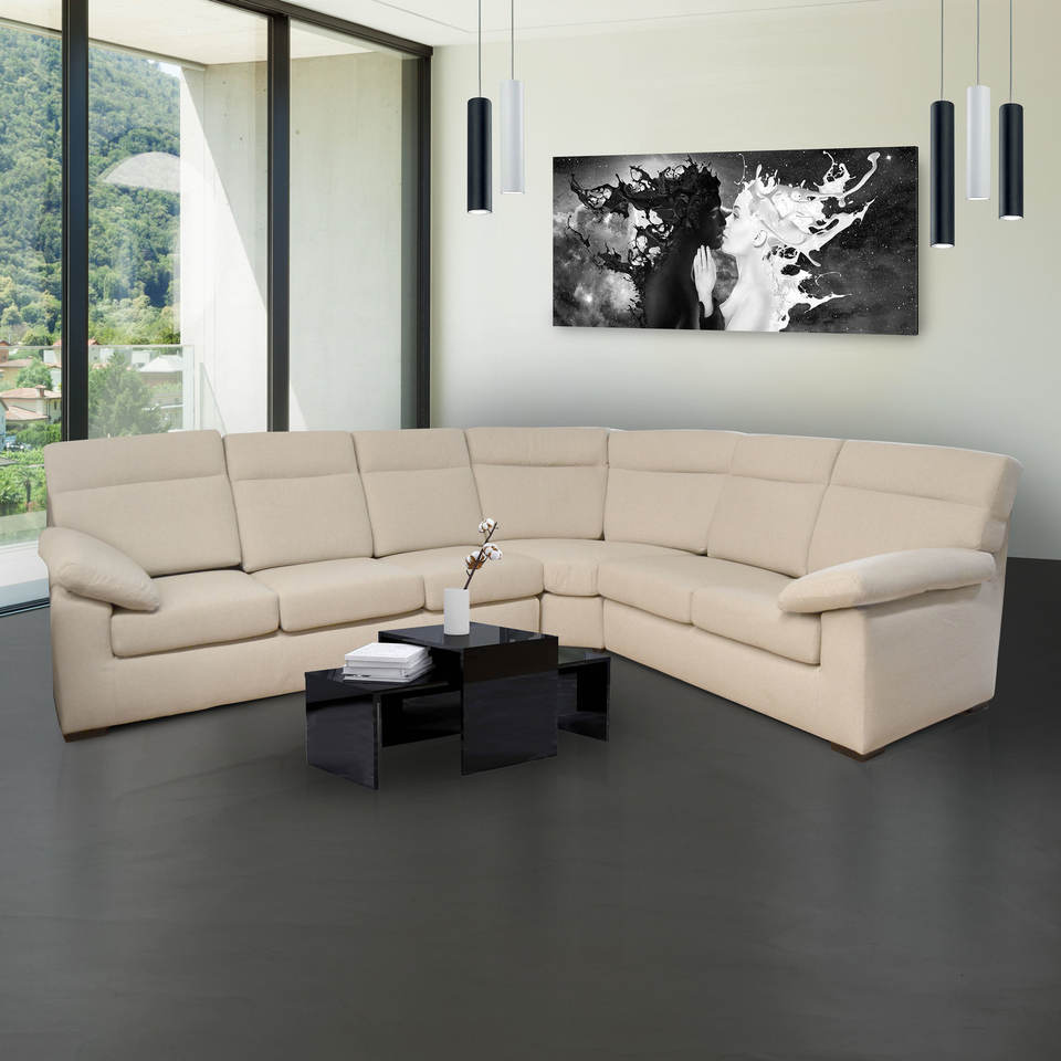 AMALIA CORNER LIVING ROOM EN TISSU CRÈME