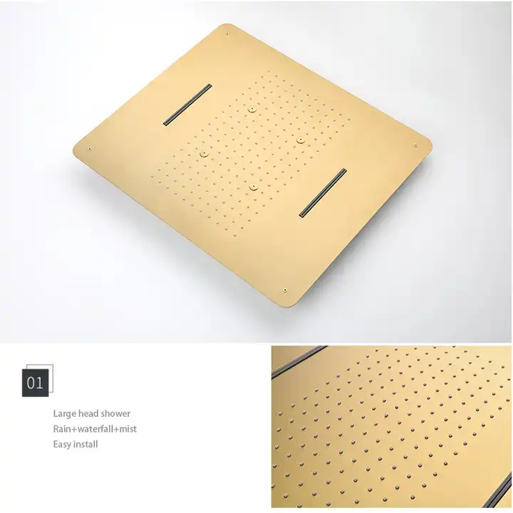 AMAXO Vanne de dérivation de douche multifonctionnelle en or brossé, mitigeur thermostatique dissimulé en laiton, kit de vanne de contrôle de douche