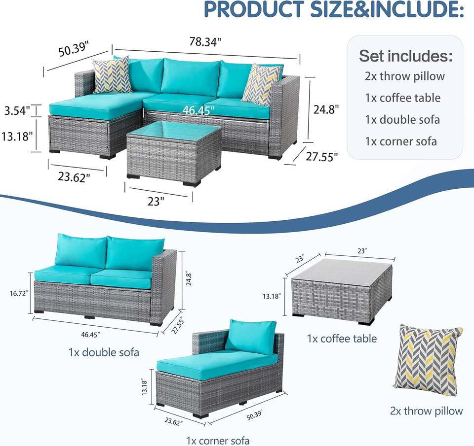 AMAZING Modern Style Ensemble de meubles de patio en rotin 3 pièces tous temps Table basse en bambou Coussins de canapé lavables pour une utilisation en extérieur