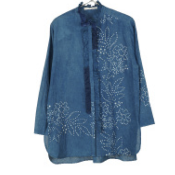 Chemise en lin AMBER 53 avec imprimé floral brodé, bleu indigo doux avec une belle décoration brodée