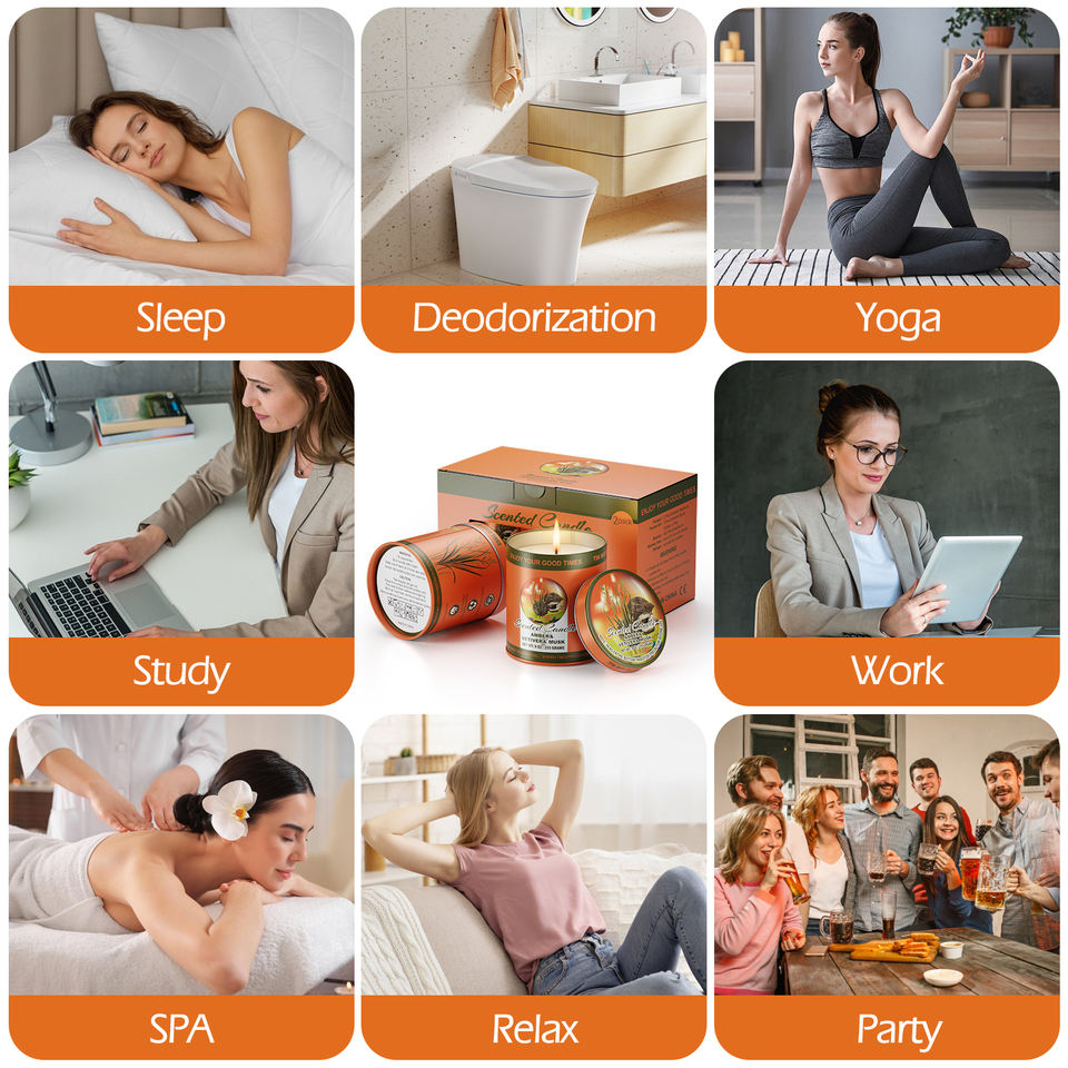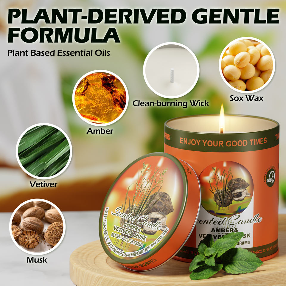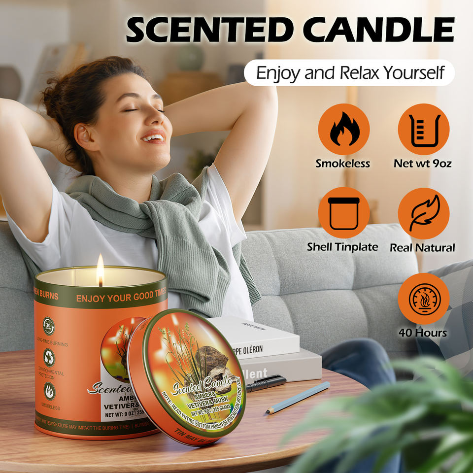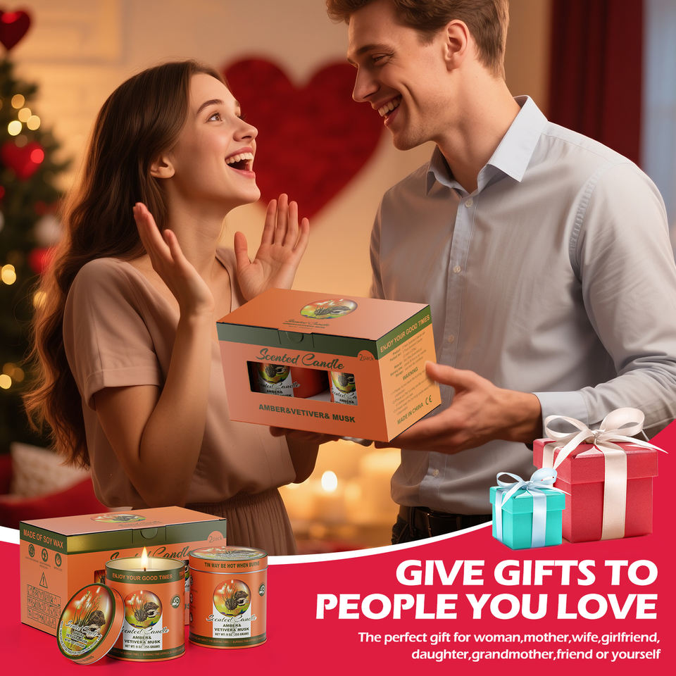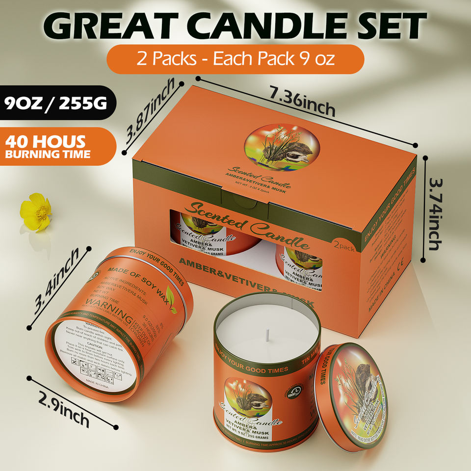 Ensemble de bougies parfumées AMBRE & VETIVER & MUSC, lot de 2, 80 heures de combustion, bougies en cire de soja sans fumée, ensemble cadeau d'aromathérapie pour femmes et hommes