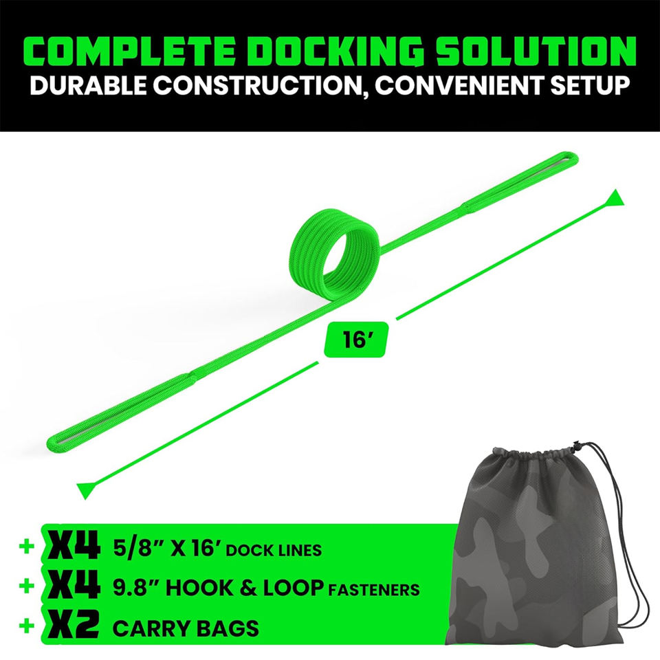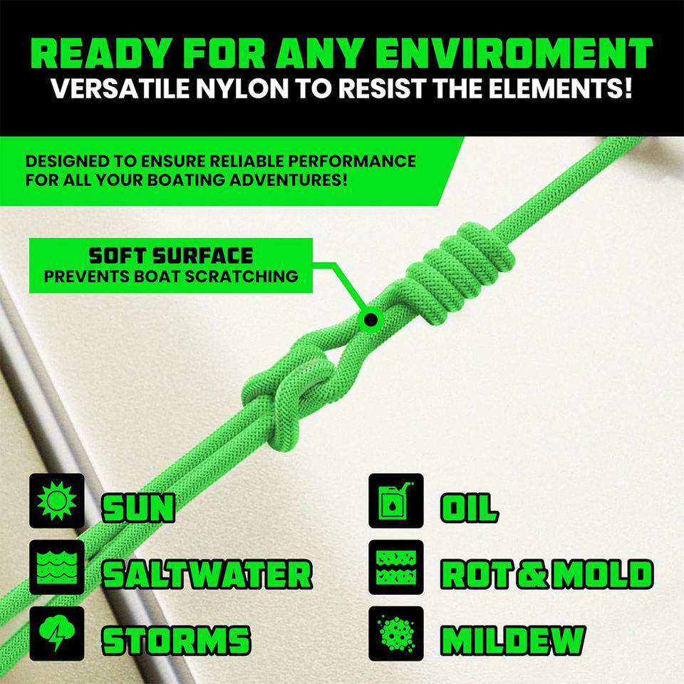 Lignes d'amarrage AMBITION 5/8\" X 16' - Corde de qualité marine robuste pour bateaux, kayaks, pêche et plus encore, accessoire de navigation ultime