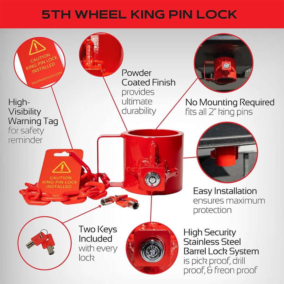Verrou de cinquième roue AMBITION - Acier enduit de poudre - Verrou de cinquième roue - Antivol - Durable - Verrou de cinquième roue sécurisé
