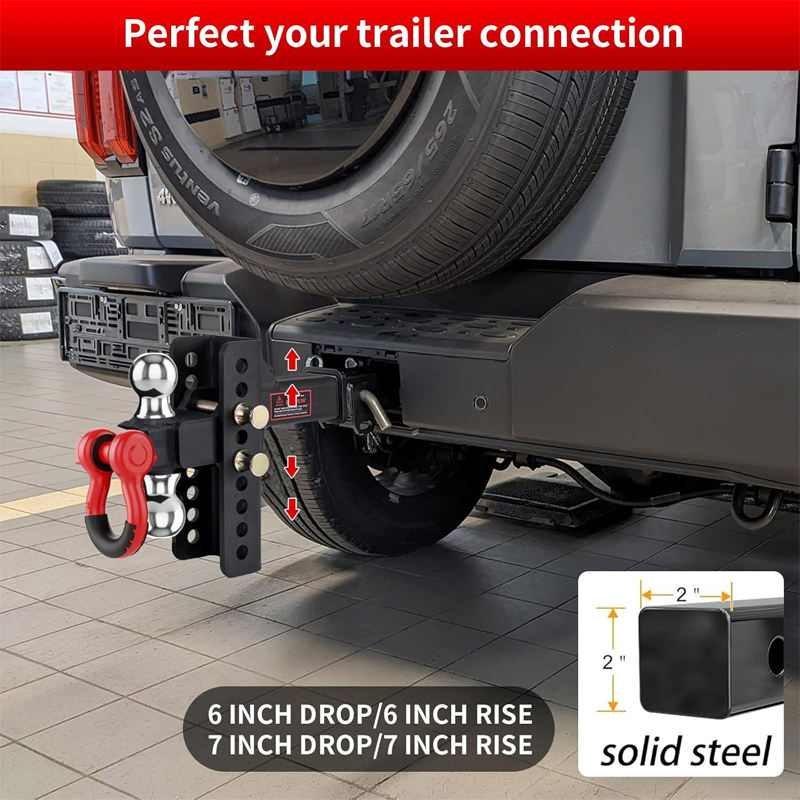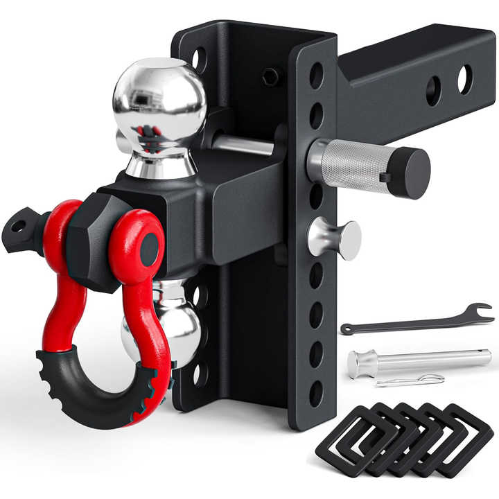 AMBITION Support de boule d'attelage de remorque réglable avec goupille de verrouillage Manille de remorquage rotative Double boule avec manille