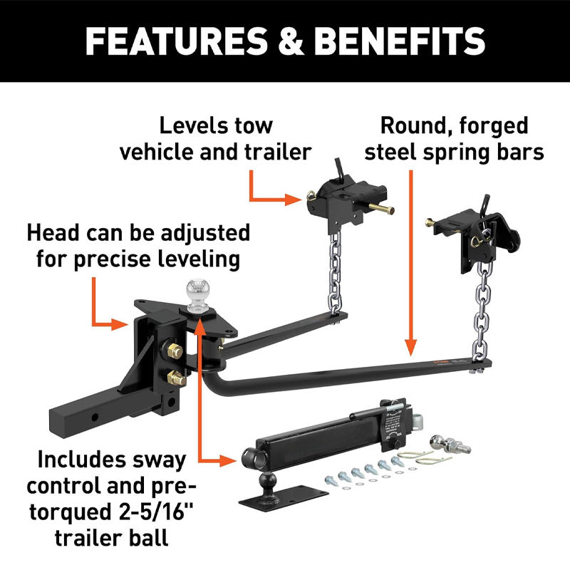 AMBITION Barre ronde de distribution de poids Attelage de contrôle du balancement Bateau Camping Caravane Remorque Attelage de distribution de poids avec barre ronde