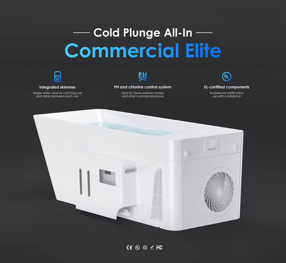Baignoire autoportante commerciale moderne tout-en-un en acrylique AMBOHR avec refroidisseur 1HP, baignoire rectangulaire pour bain froid et spa pour athlètes