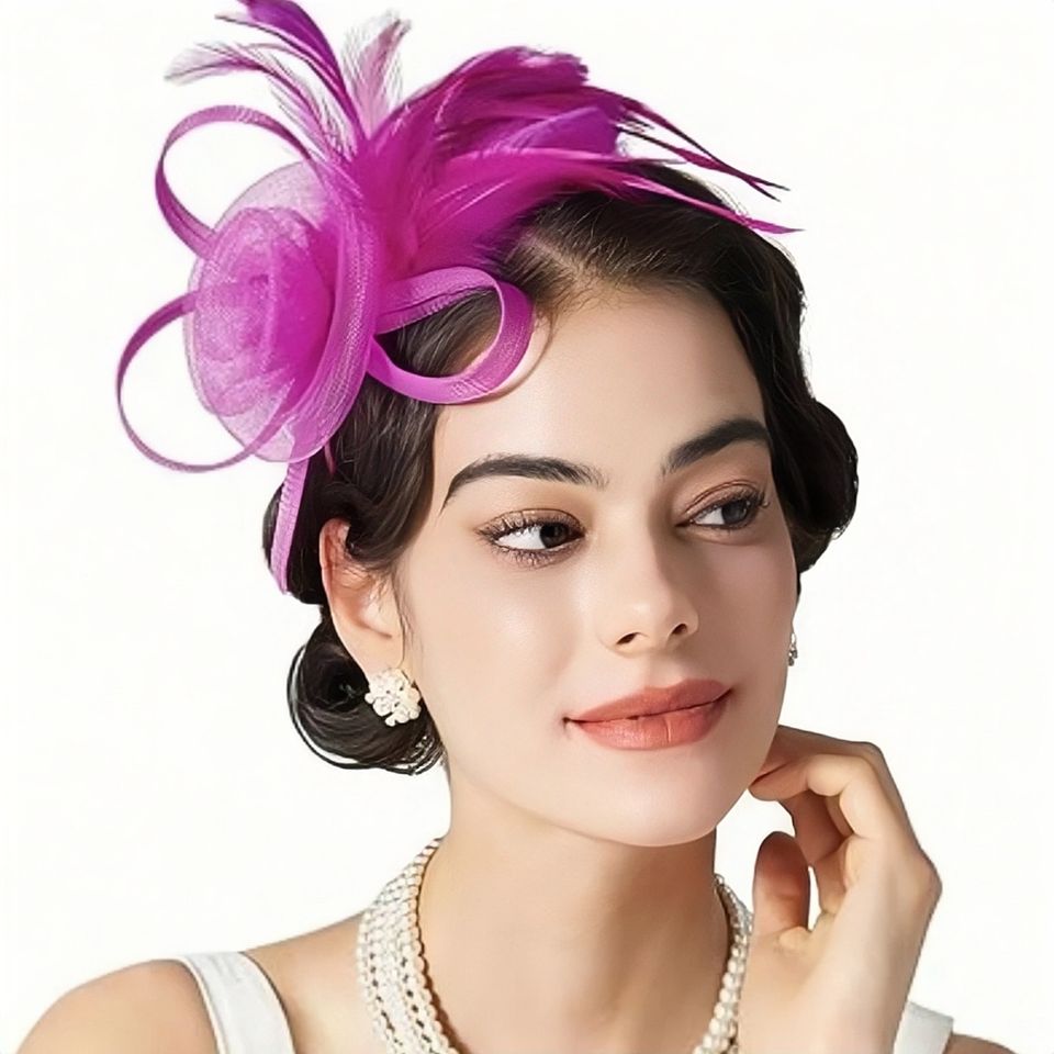 AMCAMI Chapeaux fascinateurs à plumes pour femmes 2026 Derby & Tea Party Petite taille Chine Sans matériau avec bandeau