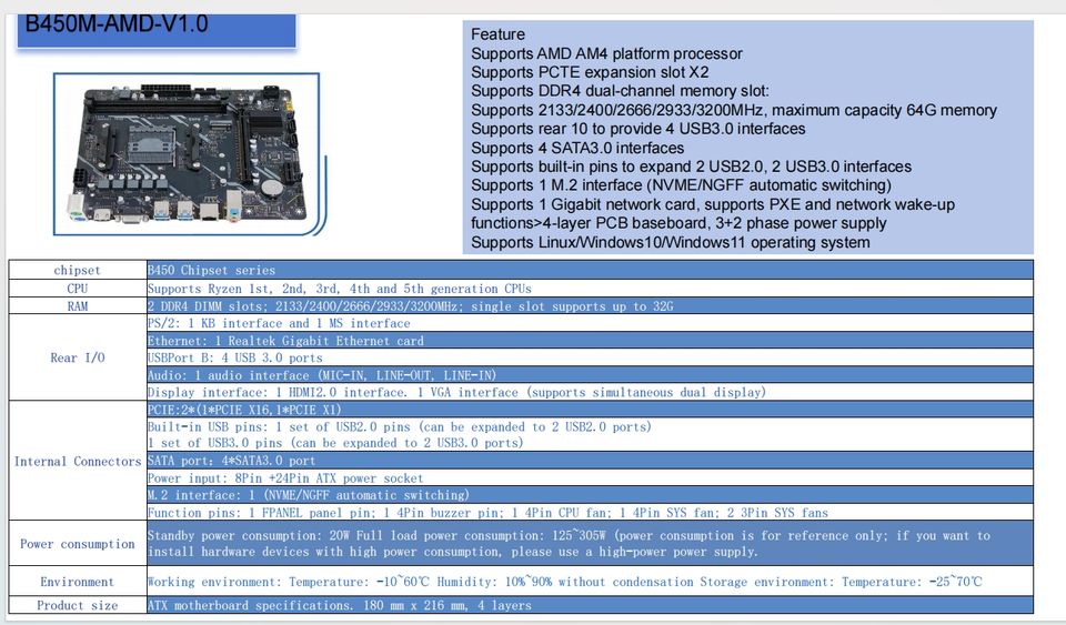 Carte mère AMD B450 Gaming avec prise en charge DDR4, socket AM4, format ATX, compatible avec les processeurs Ryzen pour ordinateur de bureau
