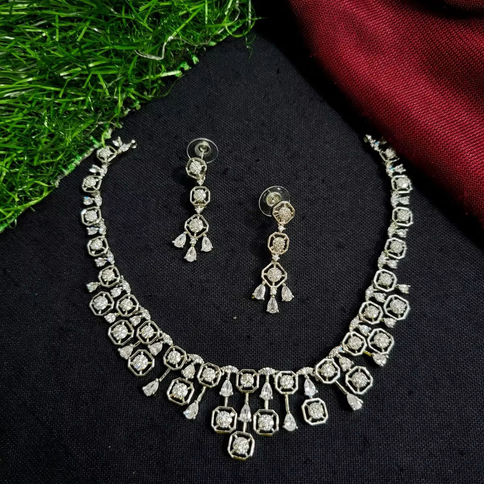 AMERICAN DIAMOND CLASSIC STYLE JEWELLERY SET AND NECKLACE SET