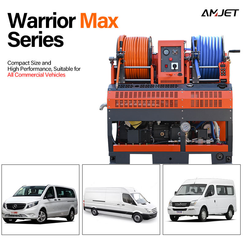 Nettoyeur de tuyaux de fourgonnette montée AMJ 200bar 70lpm Machine allemande de nettoyage d'égouts à pompe