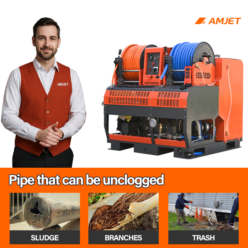 Machine de nettoyage de tuyaux AMJET WSS3030 4350psi Machine de nettoyage de tuyaux d'égout à haute pression 30lpm