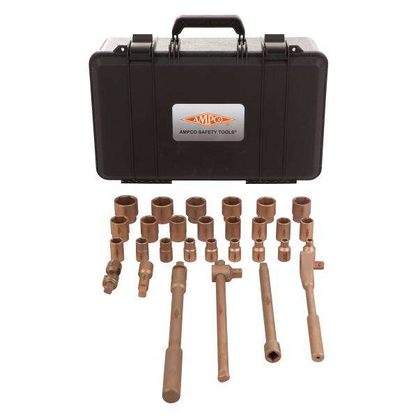 AMPCO - DC9000B Jeu de douilles, 6 pans, entraînement 1/2 '', 23 pièces, cuivre au béryllium (pouces)
