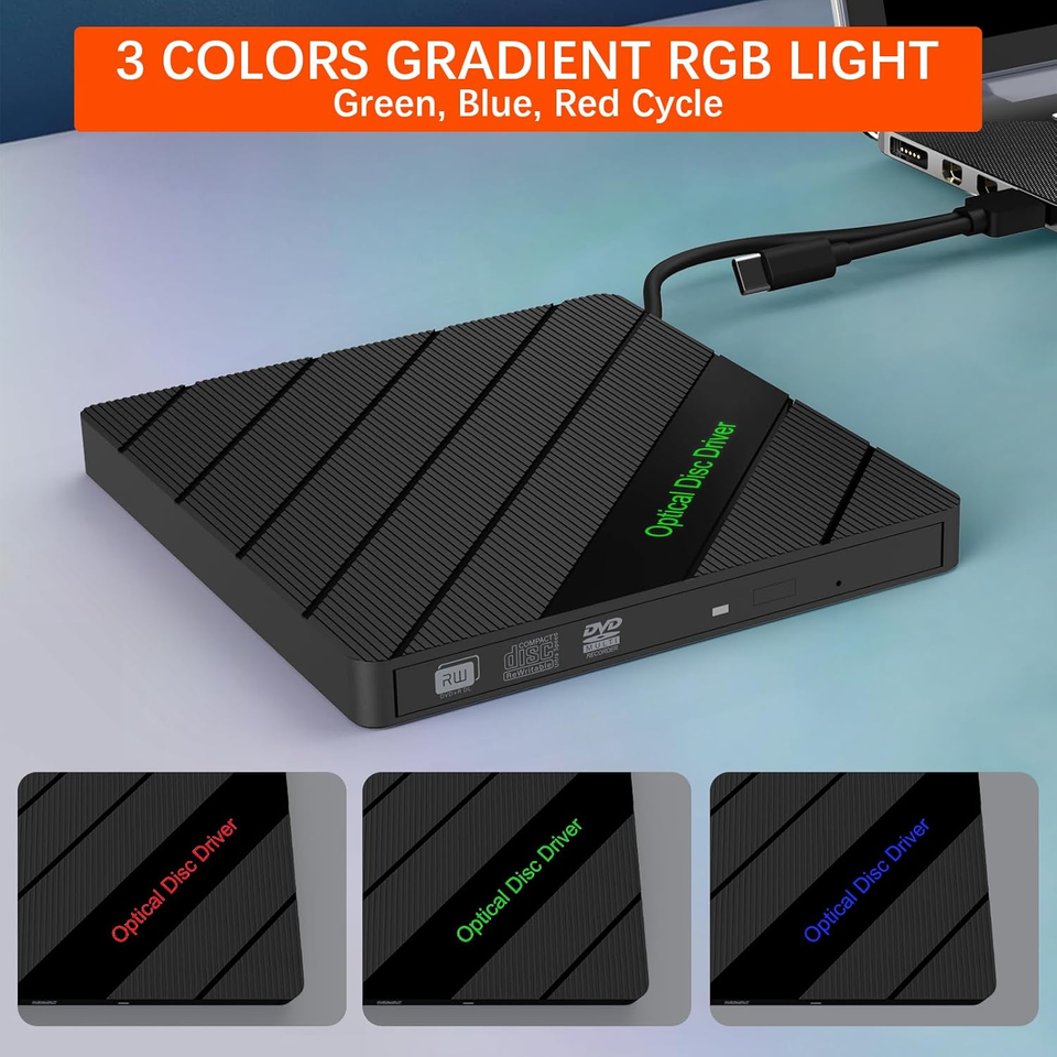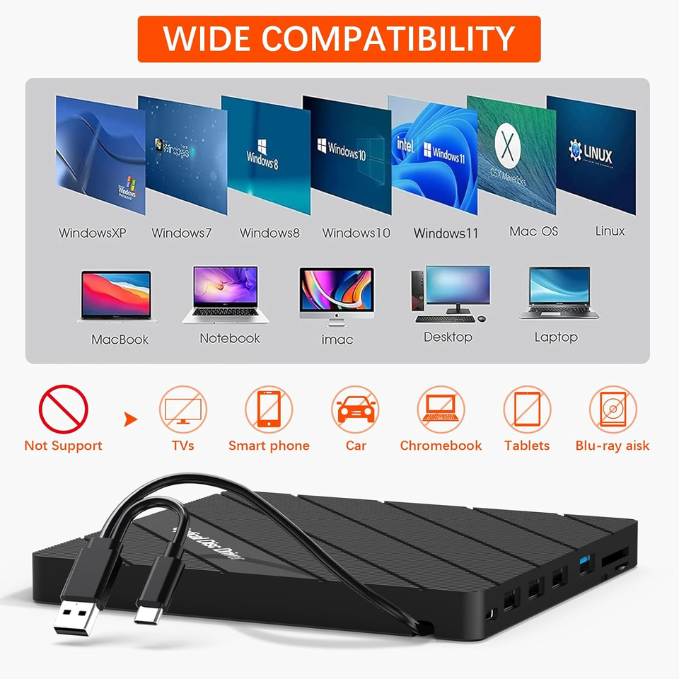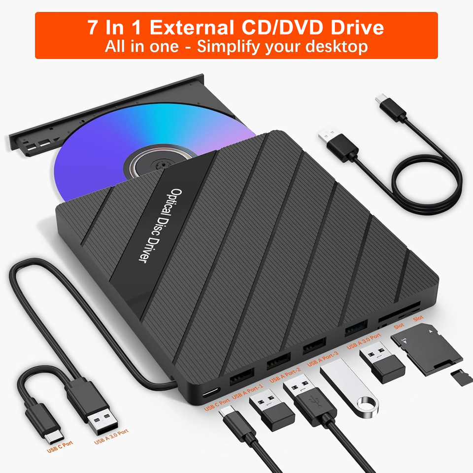 AMZ New Trending 7 en 1 USB 3.0 Type C Lecteur optique externe CD DVD RW avec lecteur de carte USB HUB Lecteur CD DVD pour PC portable