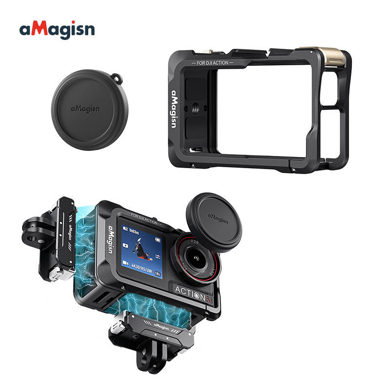 Étui en métal AMagisn - Version Premium pour DJI Osmo Action5Pro/4/3, boîtier en alliage d'aluminium avec capuchon d'objectif