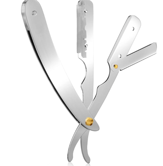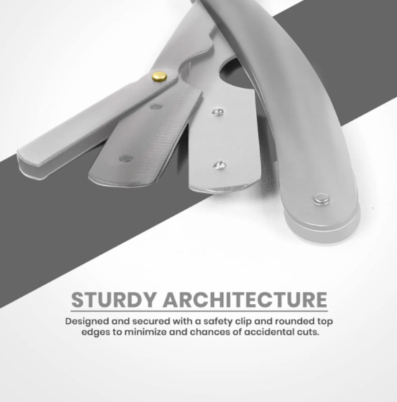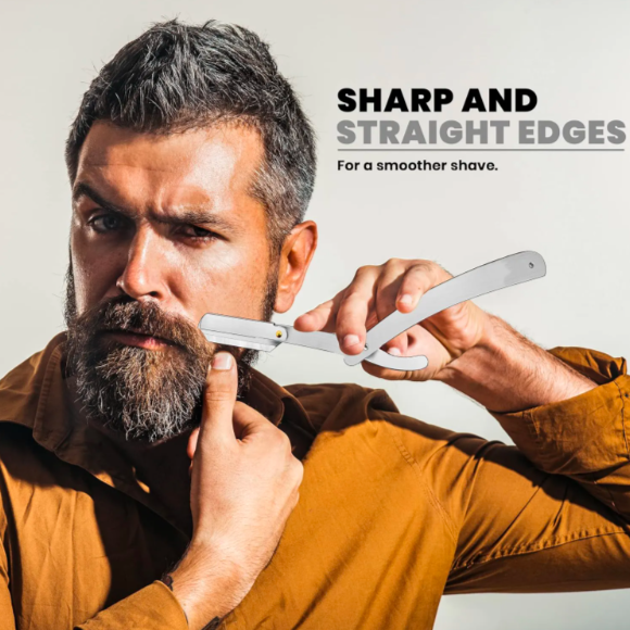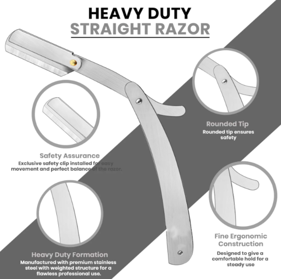 Rasoir droit professionnel ANAAIF pour l'épilation corporelle, 100 % acier inoxydable avec 100 lames en poudre
