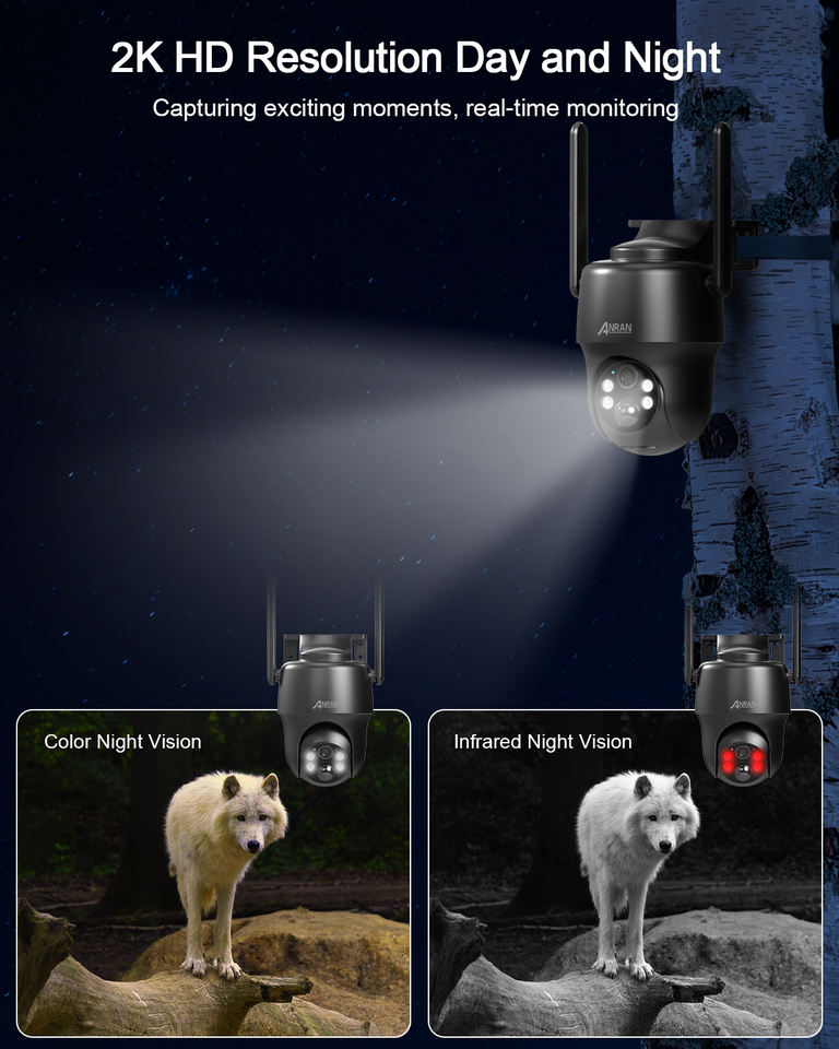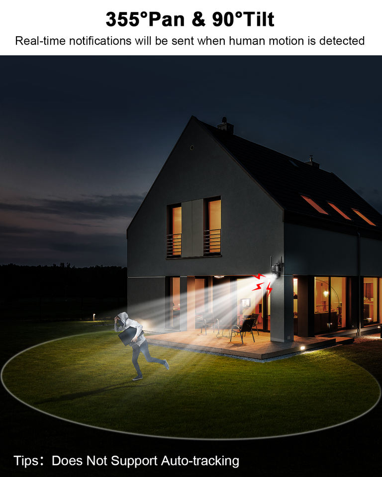 Vision nocturne, Détection de mouvement, Imperméabilisez/protégez contre les intempéries, Built-in Sirène, PAN-TILT, Audio bidirectionnel, Faible Puissance