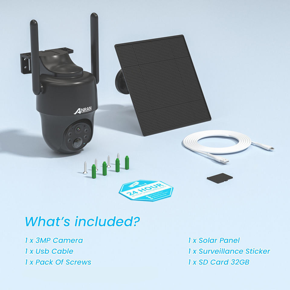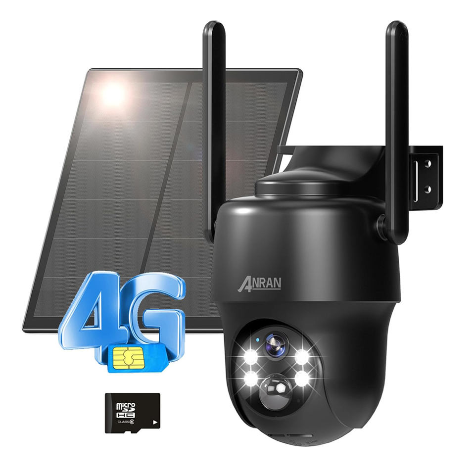 Caméra réseau solaire sans fil ANRAN 3MP 2k 3G 4G avec carte SIM, alimentée par batterie, projecteur, vision nocturne, extérieur, maison, PTZ, 4G