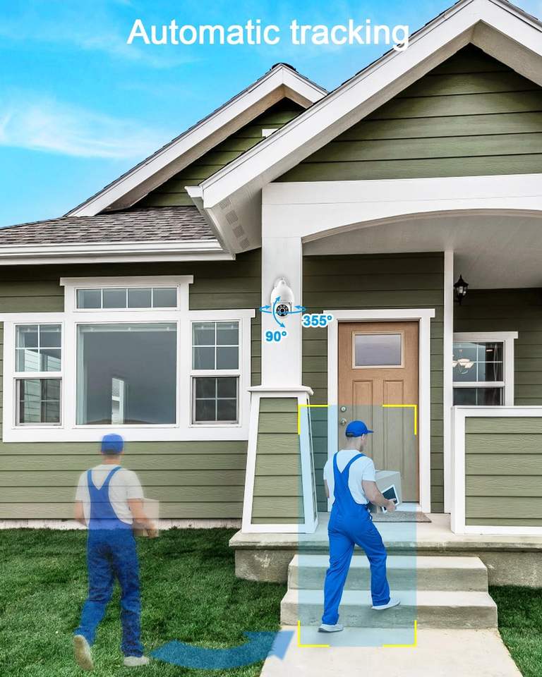 PAN-TILT, Built-in Sirène, Vision nocturne, Audio bidirectionnel, L'homme De Suivi De Mouvement, Détection de mouvement, Détection sonore, Imperméabilisez/protégez contre les intempéries