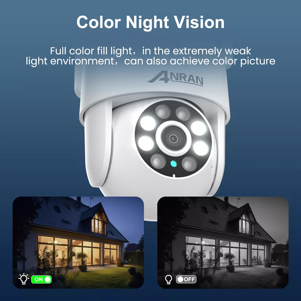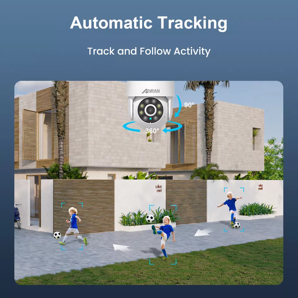 Caméra de sécurité PTZ ANRAN 5MP extérieure, zoom 4x, caméra sans fil WiFi domestique, suivi automatique du mouvement, étanche IP65, vision nocturne couleur