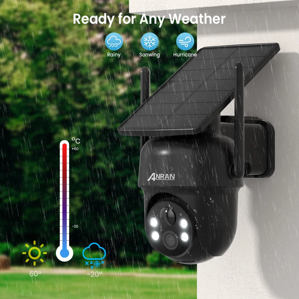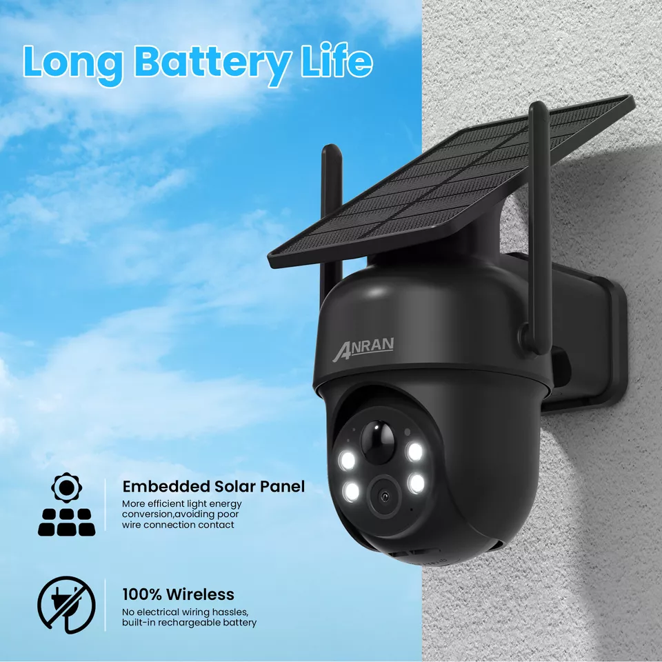 Caméras de sécurité solaires ANRAN 5MP extérieures, caméra WiFi 2.4G sans fil pour la maison, vue PTZ 360 °, détection humaine PIR, étanche IP65