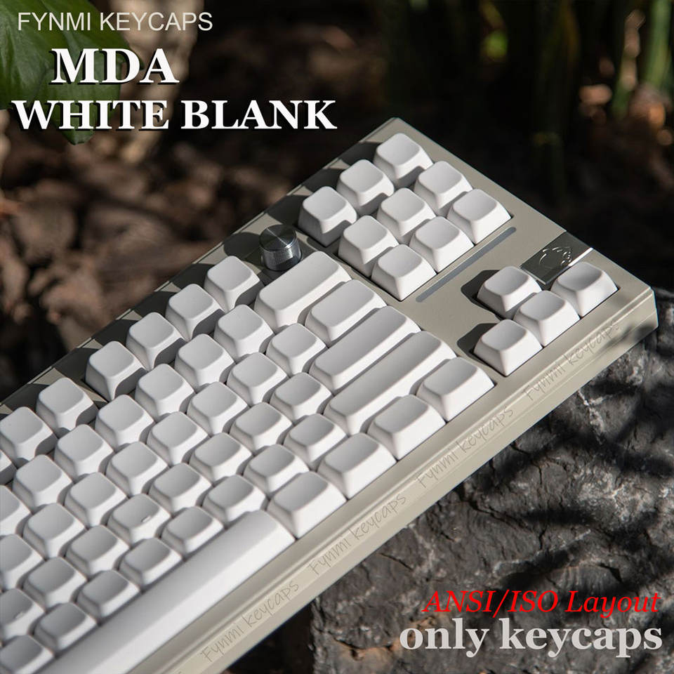 Fynmi Original MDA Profile Blanc PBT Dye-Sublimation Keycaps pour 61/68/71/75/87/98/104/108 Touches Clavier Mécanique