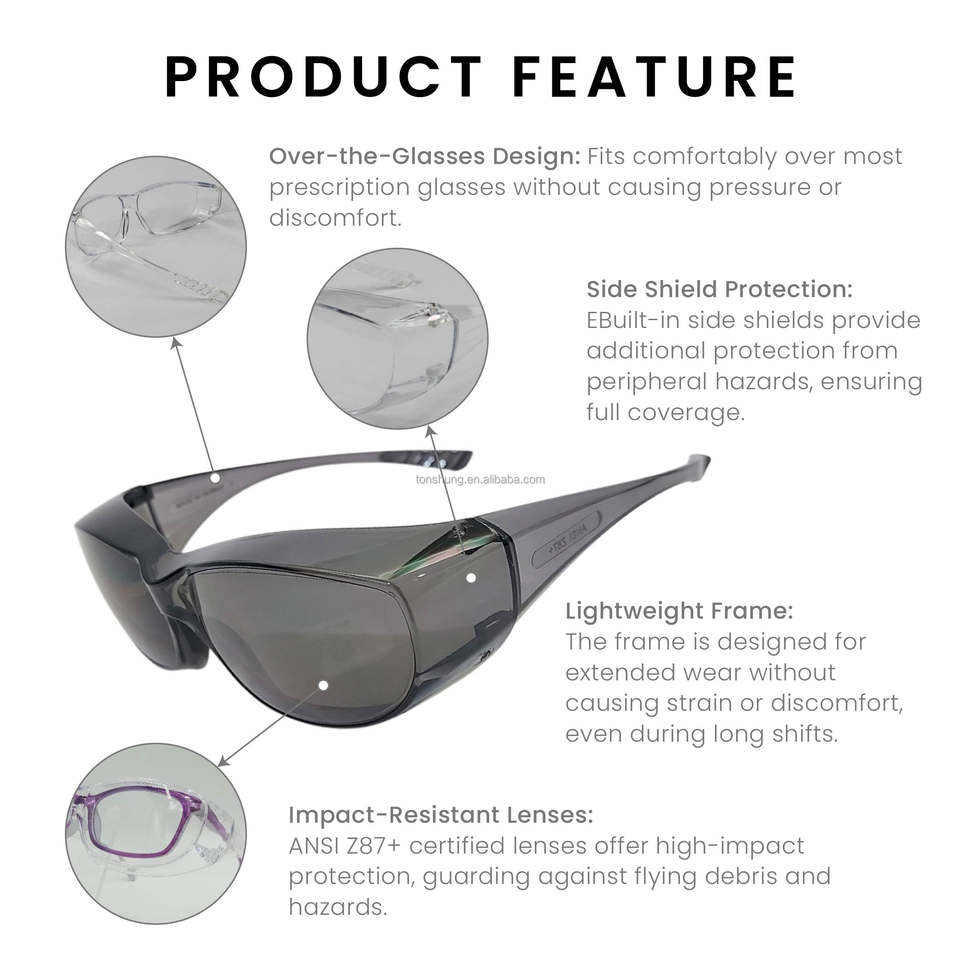 Design & Construction:Fit over the glasses; Screless snap-ft