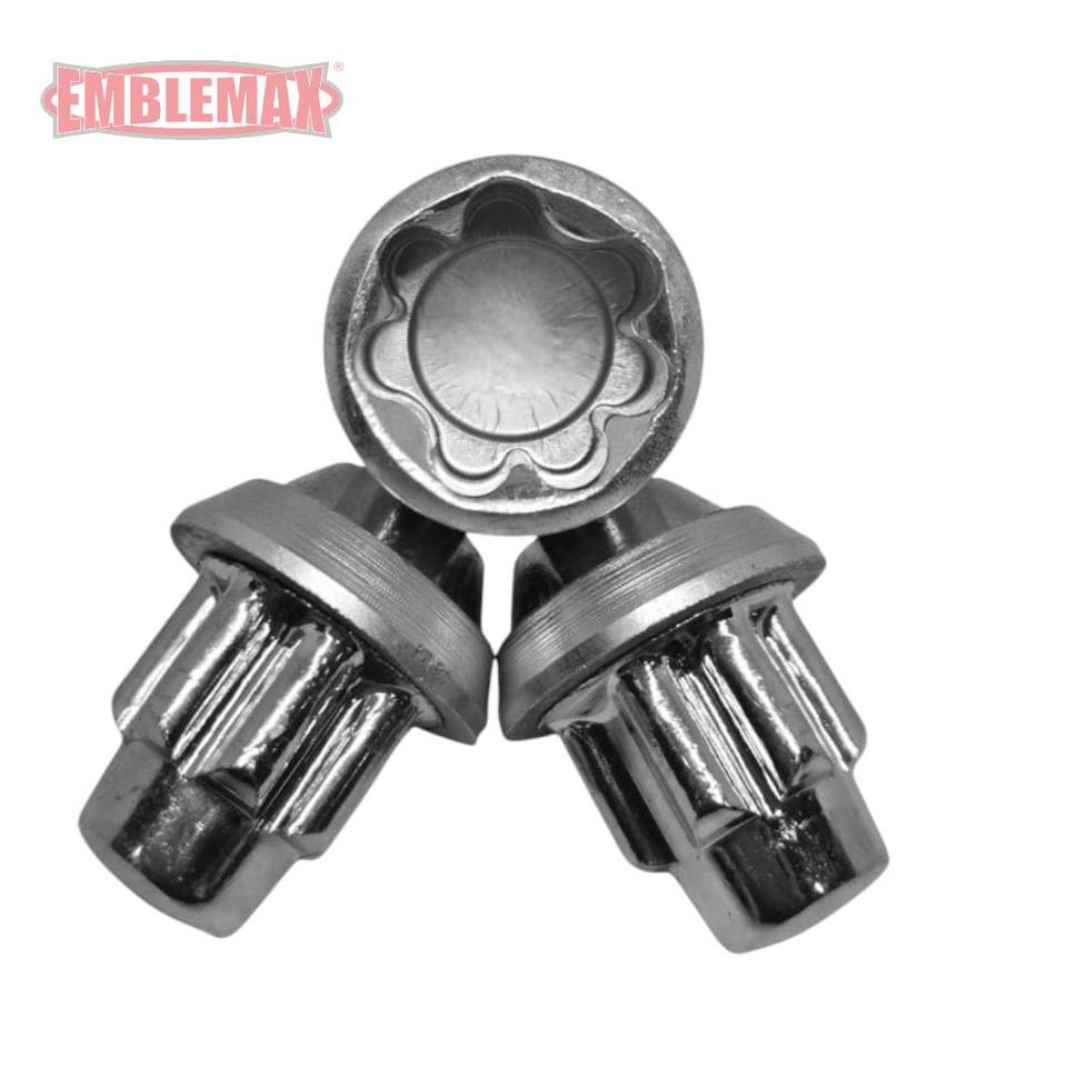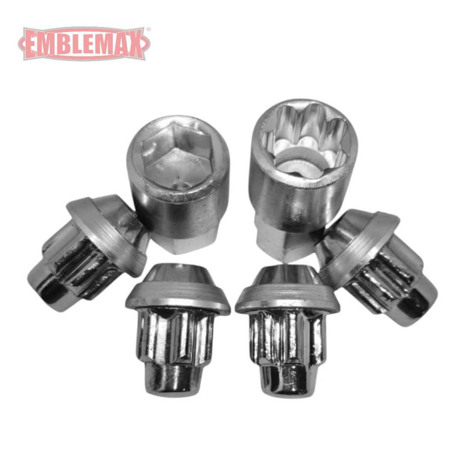 Emblemax 2621 4 Nouveaux boulons antivol avec rondelle M12X1.5 Finition chromée Matériau en acier 6 pièces pour FD//MT/TY/HY//HD