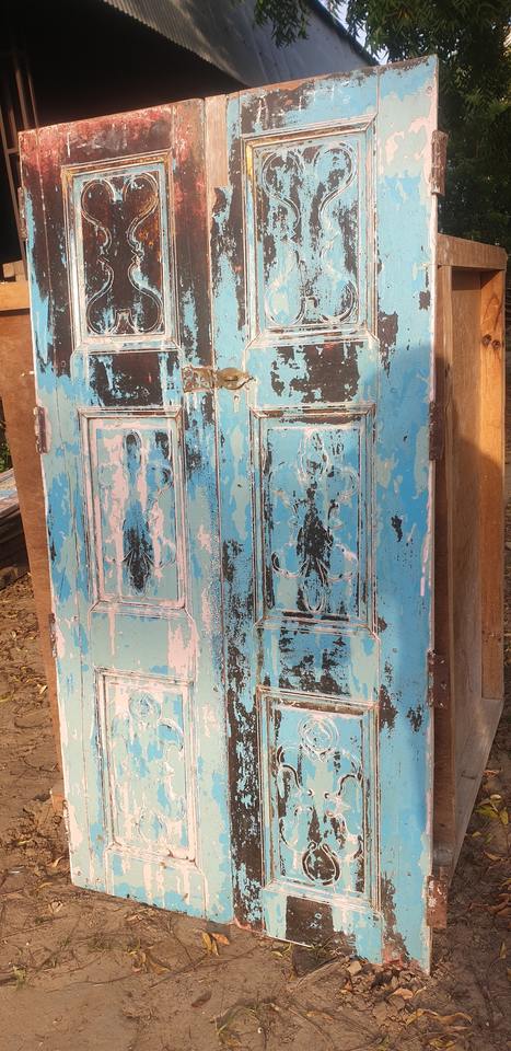 Vintage ancienne porte en bois Code 2100 intérieur extérieur pliant/coulissant porte en verre en acier Antique panneaux de porte en bois massif