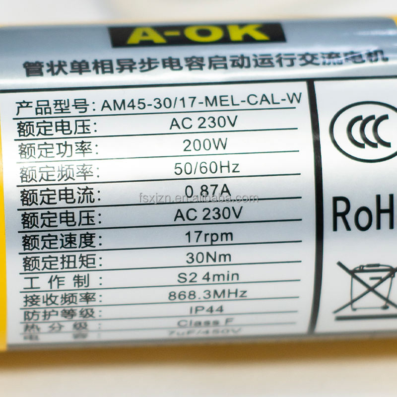 AOK AM45-30/17-MEL-CAL-W Smart Wi-Fi Shutter Motor Motor for Sunshade with Light and Wire Control Electronic Limit AC Motor