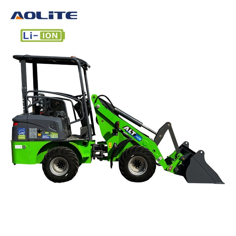 Mini chargeuse sur pneus électrique AOLITE E606Pro avec batterie au lithium LiFePO4