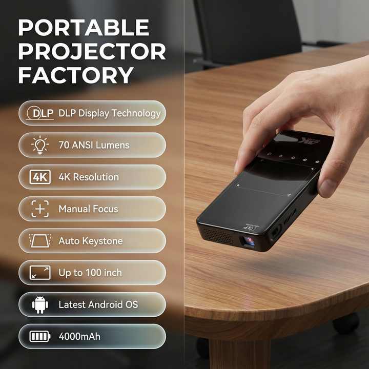 Projecteur vidéo miniature intelligent AOME S90 3D prêt pour la 4K, home cinéma, anti-poussière, Android 9, IPTV, LED, 2 Go de RAM, batterie intégrée, objectif, Wi-Fi 5G