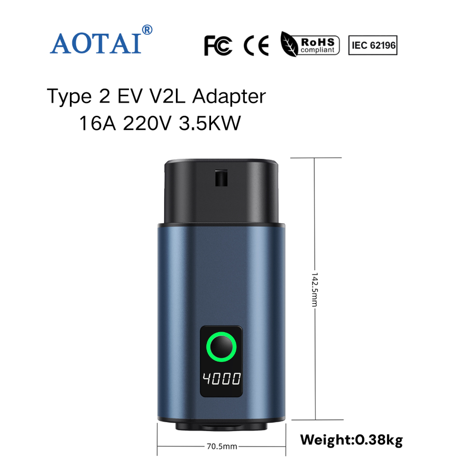 AOTAI Nouvel adaptateur V2L Type 2 vers Schuko 16A Adaptateur de décharge V2L Compatible BYD/Xpeng/MG/Kia/Hyundai