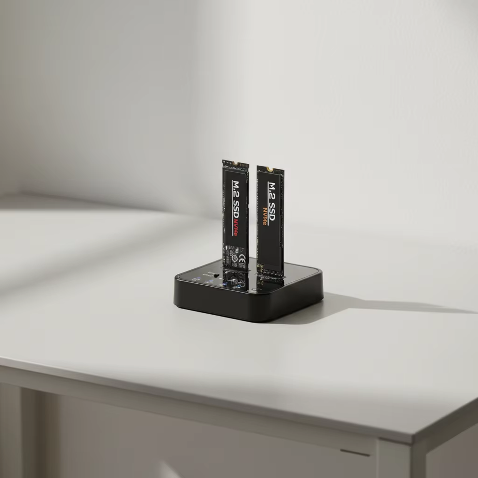 Station d'accueil USB-C AOTECH 20 Gbit/s NVMe M.2 double baie avec clonage hors ligne et boîtier en plastique pour SSD et disques durs