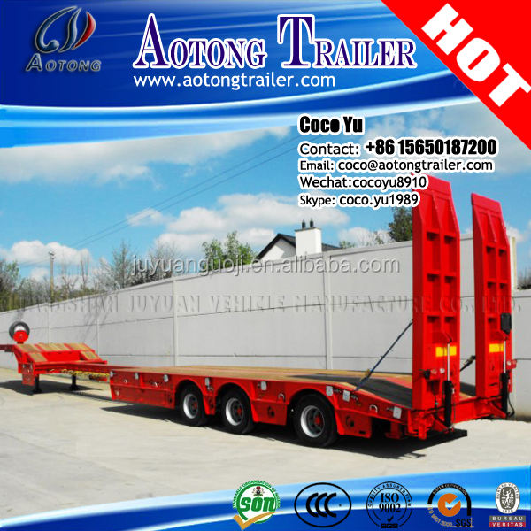 AOTONG hydraulique lit bas semi-remorque, pelle grue transport plate-forme basse remorque camion