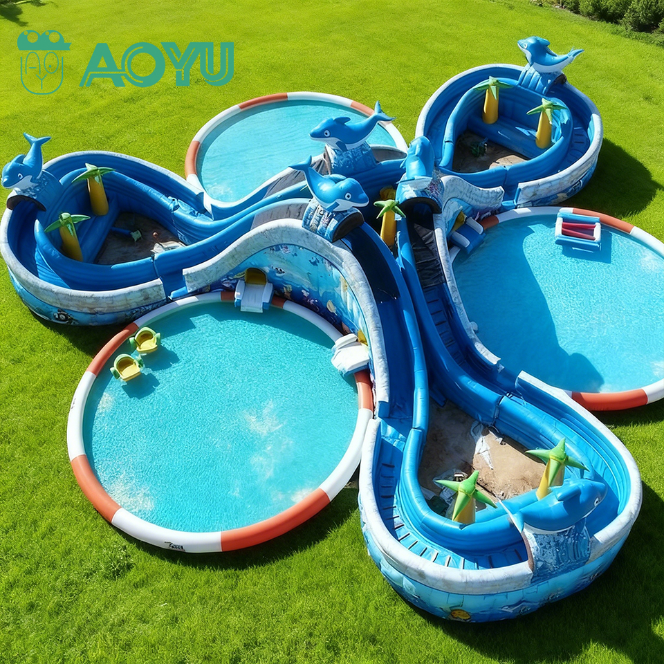 Parc gonflable commercial AOYU en PVC avec toboggan aquatique et piscine, capacité supérieure à 500 kg, jeux de parc aquatique en plein air