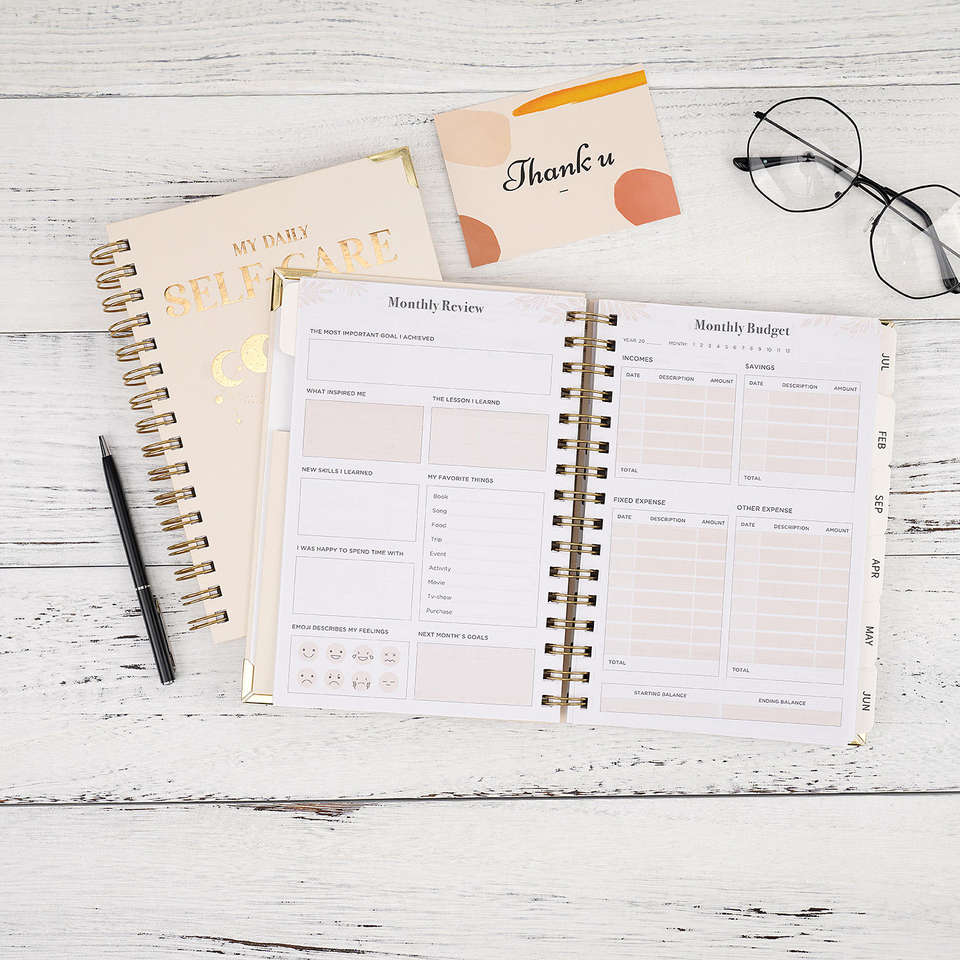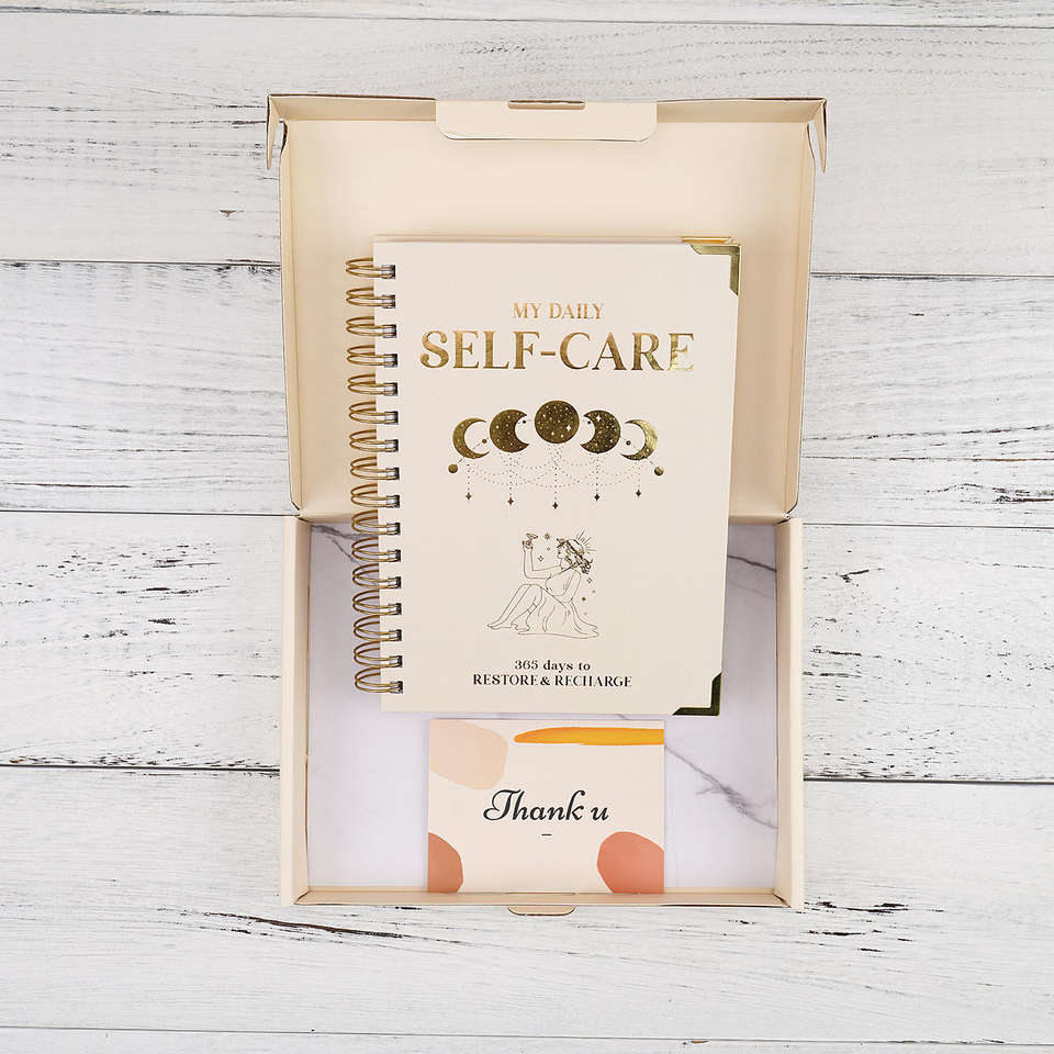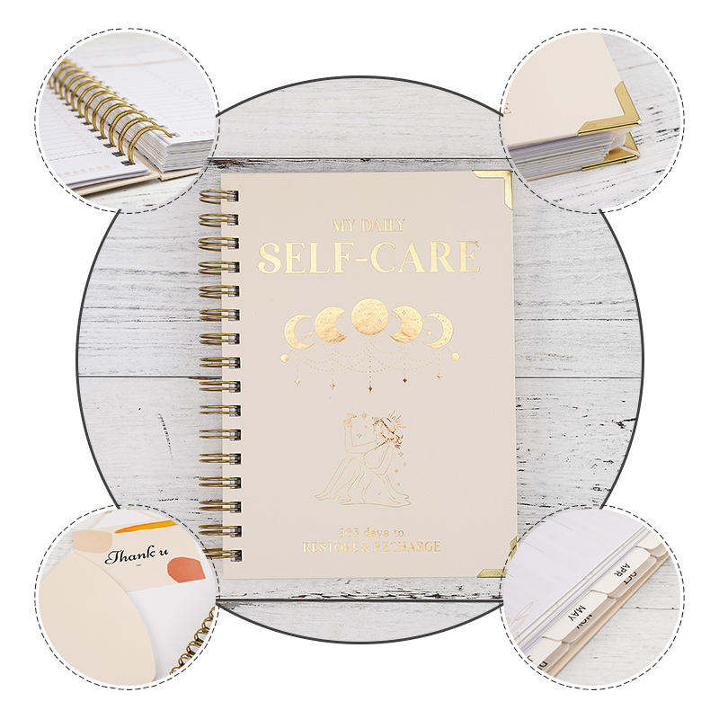 AP Journal Printing Couverture rigide personnalisée en tissu de lin beige Couverture lune et étoile Carnet de journal personnalisé pour soins personnels