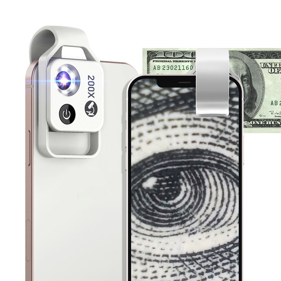 APEXEL Vente en gros Loupe à zoom 200X avec LED à clipser pour téléphone portable Microscope Micro-lentille pour smartphone