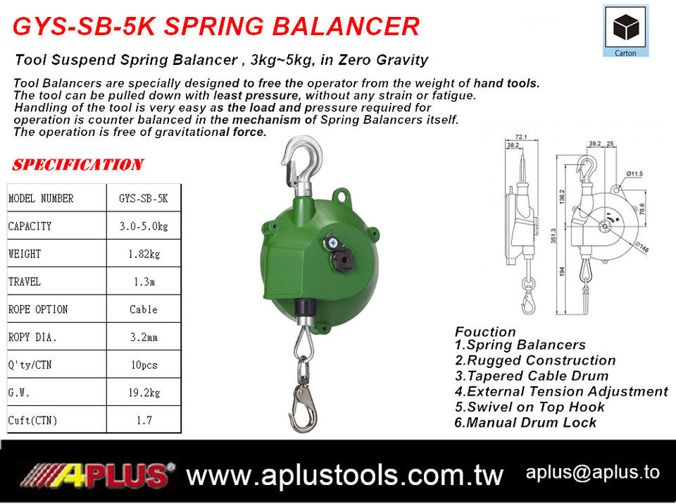 APLUS GYS-SB-5K Équilibrage de charge industriel à ressort 1,82 kg Câble de 1,3 m de longueur de course 3,2 mm Personnalisable OEM Garantie 1 an