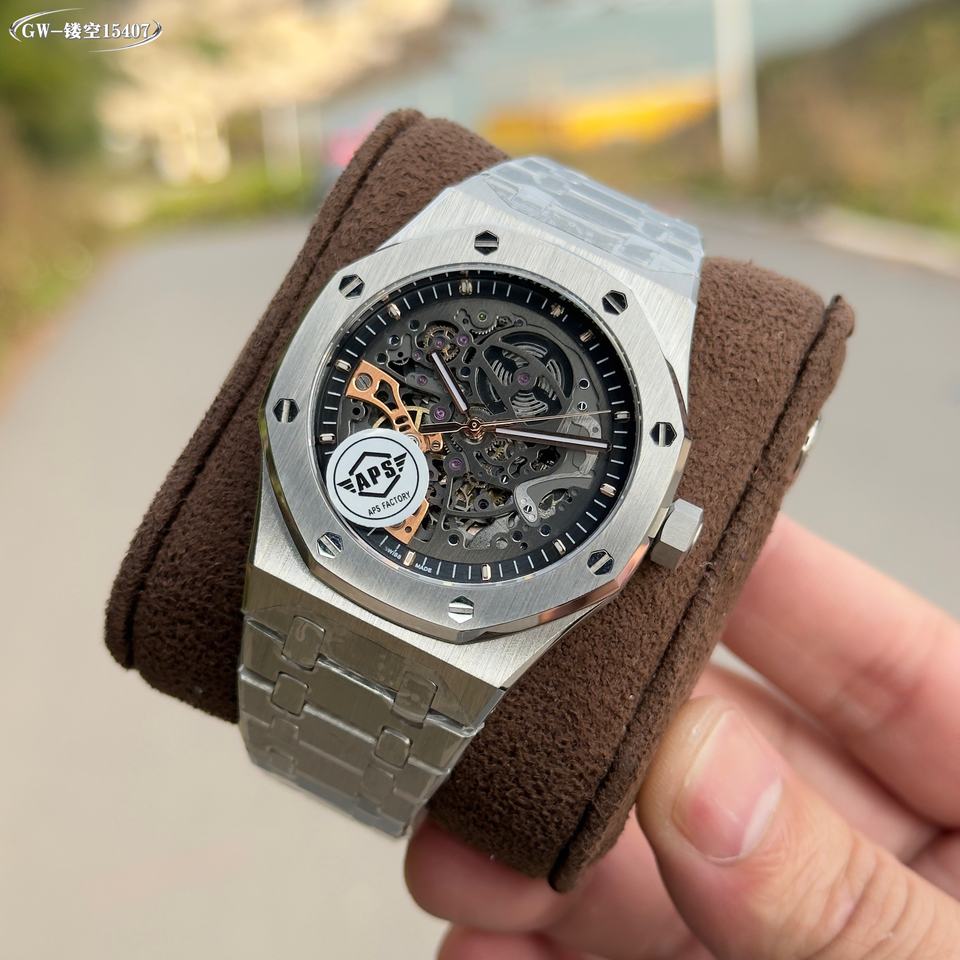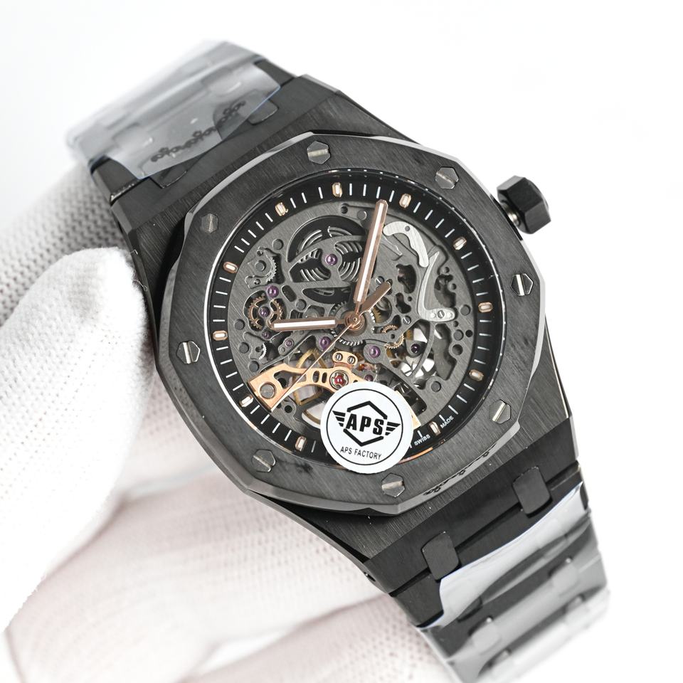 Montre automatique squelette de luxe APS Factory 15407ST Cal.3132 - Boîtier octogonal en céramique noire, mouvement mécanique de haute précision