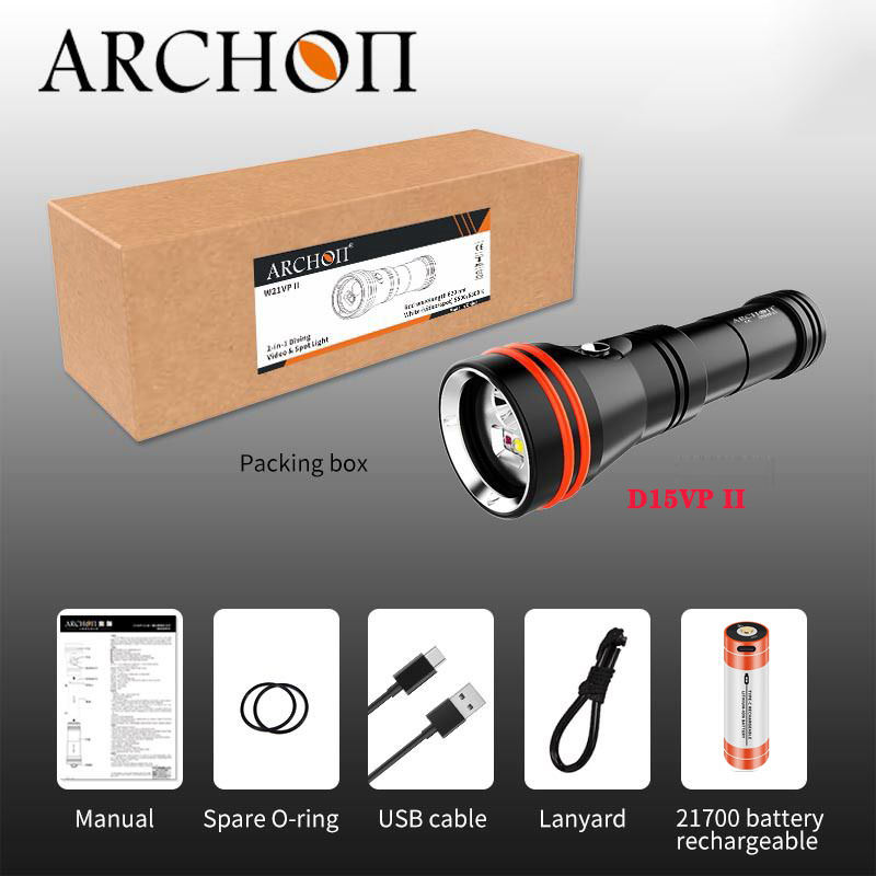 ARCHON D15VP II Lampe de plongée à LED 3 couleurs 6500K Lumière de remplissage photographique Vidéo HD 100m Lampe de plongée sous-marine