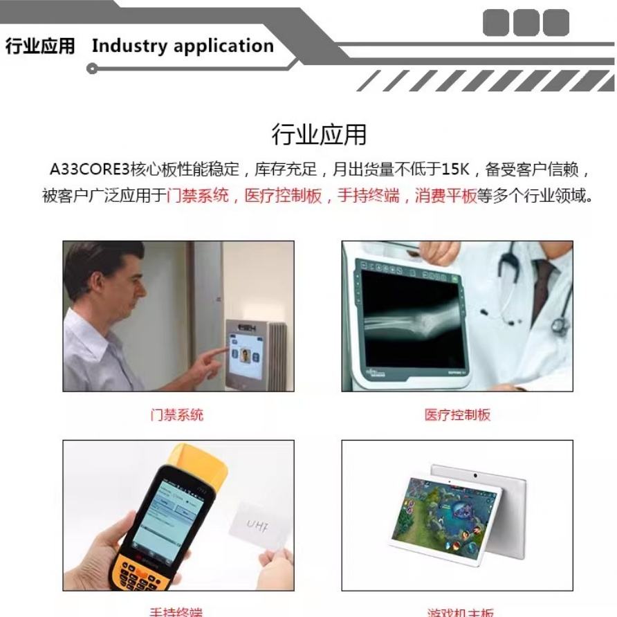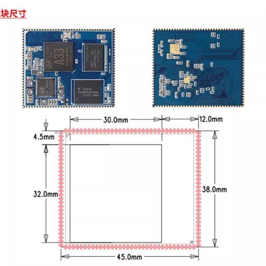 Carte de développement Linux avec écran pour solution embarquée A33-Core3 Quad Core A7 1.2G à petit format (type 'stamp hole')